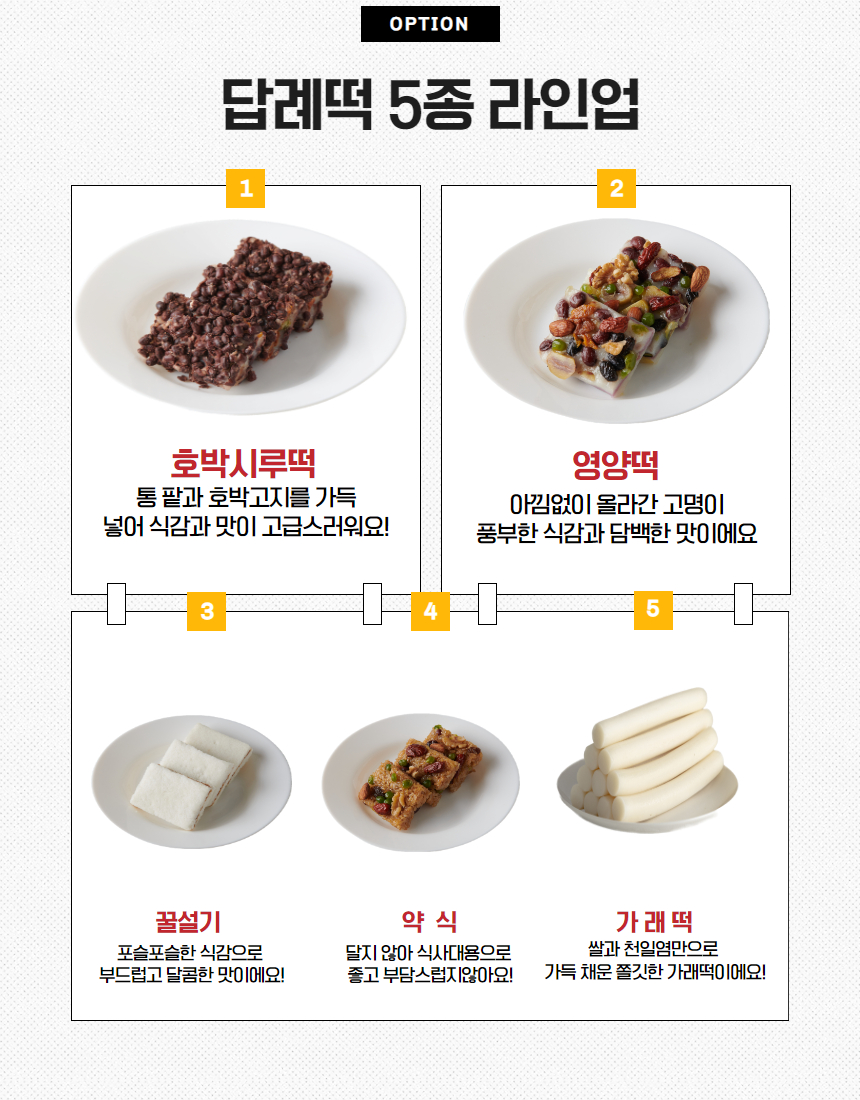 [이벤트] 한 끼 대용 전통떡 5종세트 3kg(호박시루떡+영양떡+꿀설기+약식+가래떡)