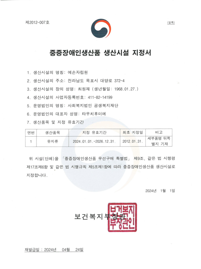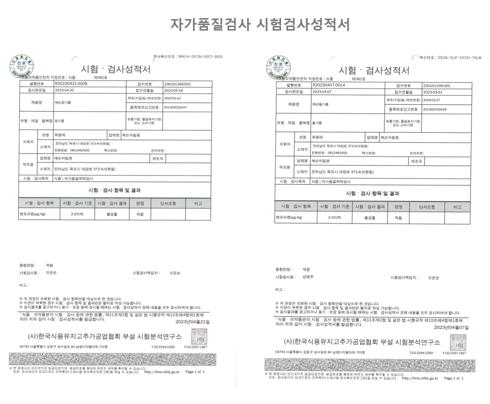 | 생산자 및 소재지 | 예손자립원, 전남 목포시 대양로372-4 |
