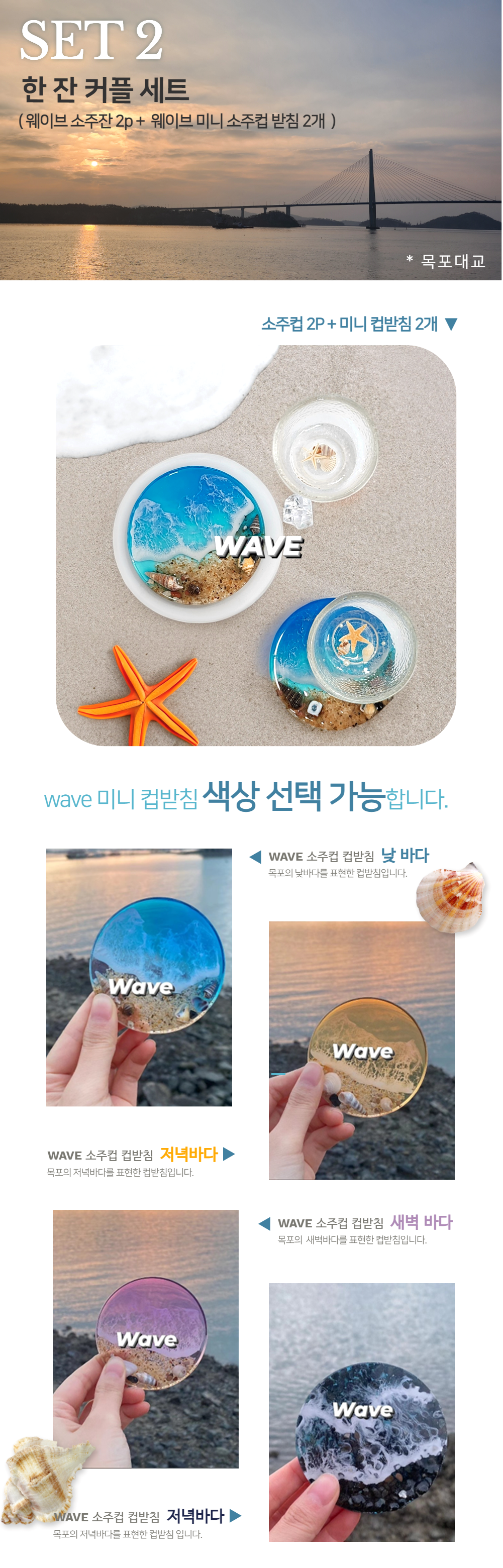 웨이브 목포 한 잔 세트 2세트(소주컵 2잔+받침 2개)