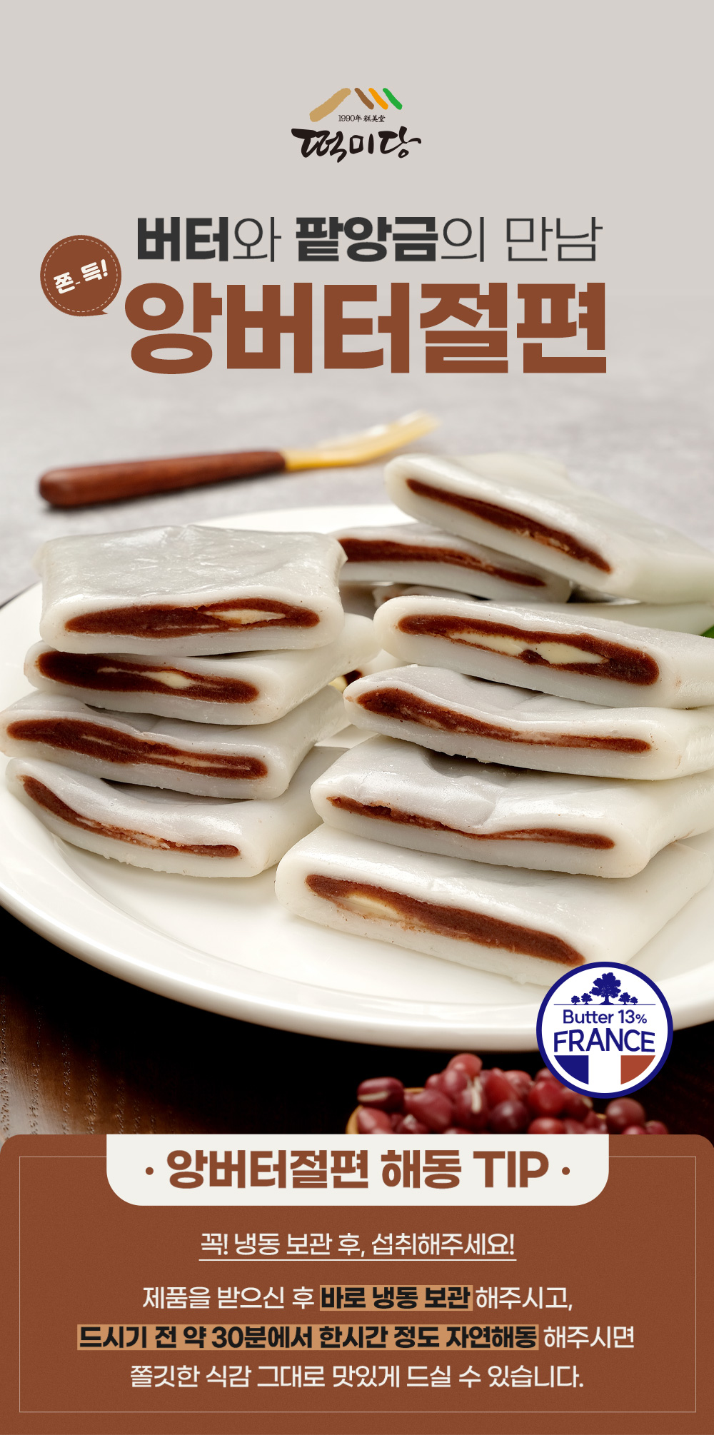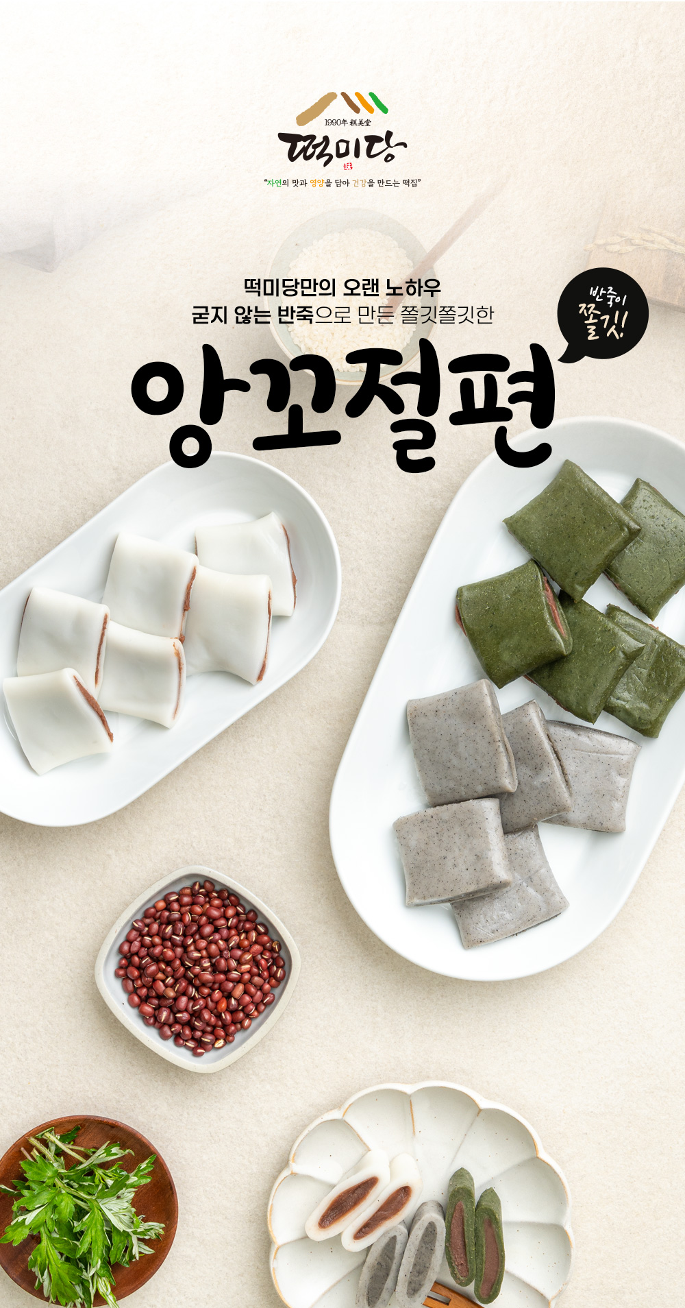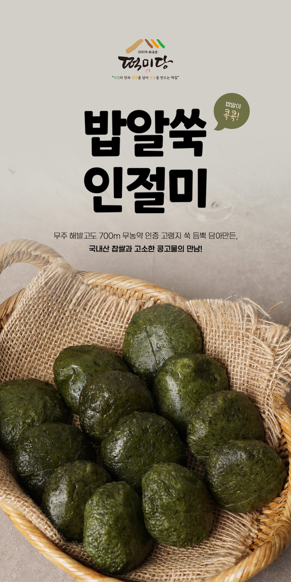 | 포장단위별 내용물의 용량(중량), 수량 | 밥알쑥인절미600g, 쑥앙꼬절편 390g, 앙버터절편400g |