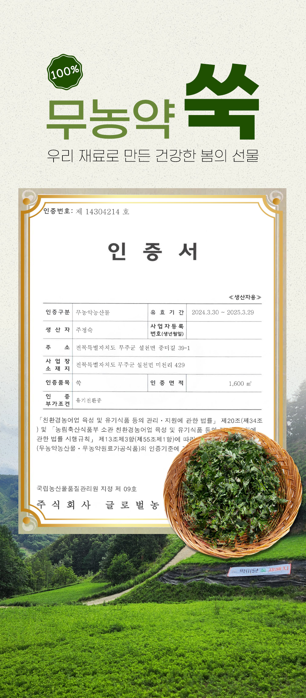| 생산자 및 소재지 | (주)만풍농업회사법인 |