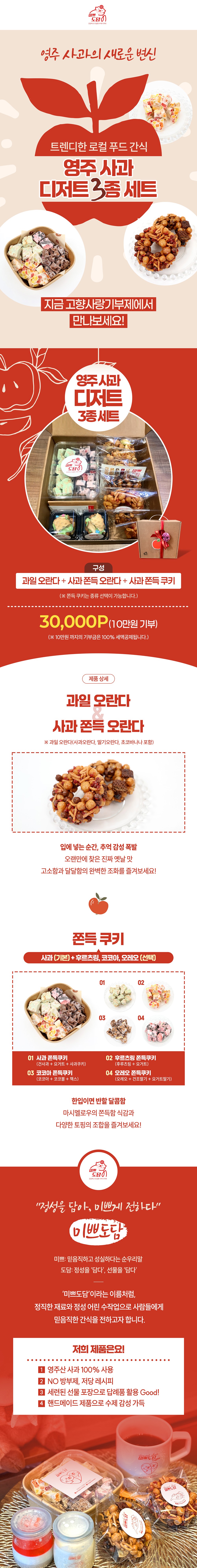 [이벤트] 영주 사과 디저트 3종 90g+사과 키링+사과 오란다 150g*2개 고향사랑기부제, 10만원까지 전액 세액공제 무료 답례품! 직장인은 안 하면 바보!