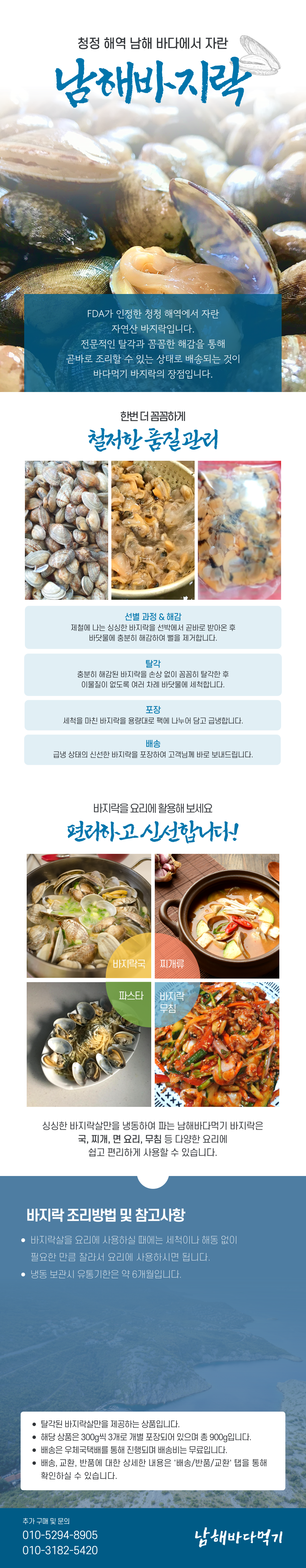 청정 해역 남해 바다에서 자란 깐 바지락 세트 900g(300g*3팩)