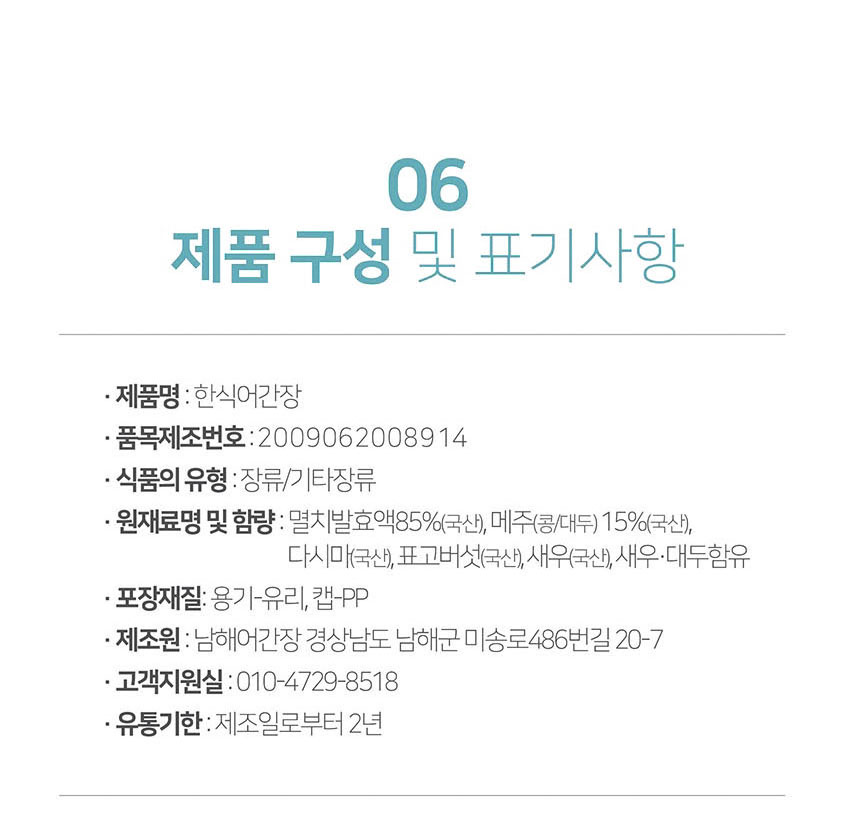 | 원재료명 및 함량 | 상세정보 별도표기 |