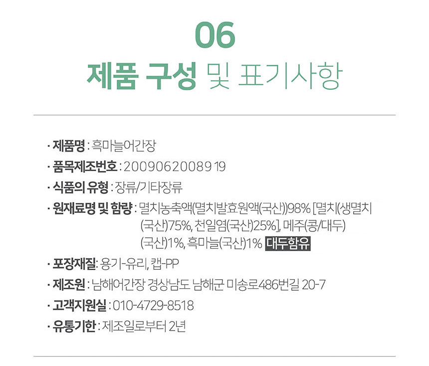 | 원재료명 및 함량 | 상세정보 별도표기 |