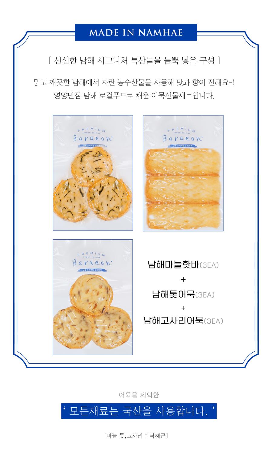 남해 수제 어묵세트 840g(톳 50g*3개+고사리 50g*3개+마늘 80g*3개)