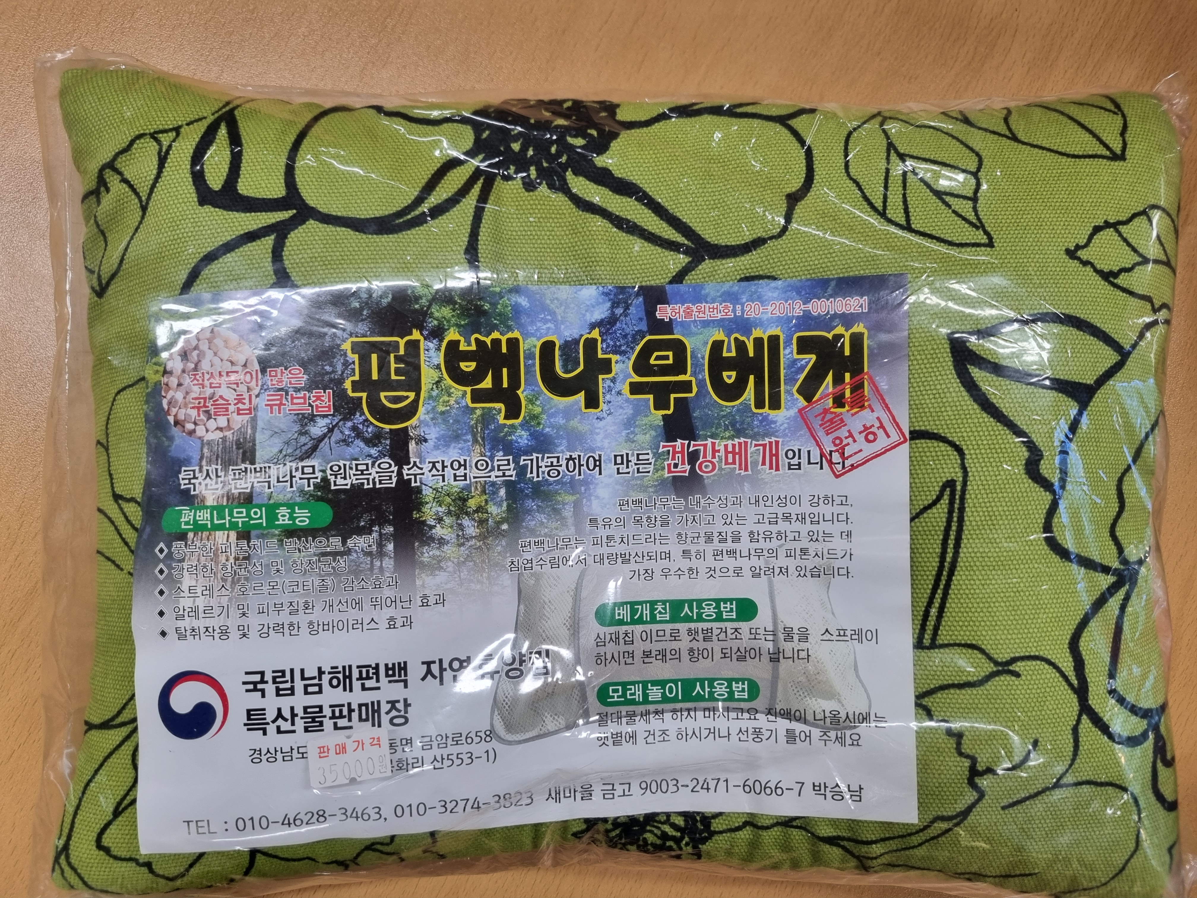 국산 편백나무 원목을 수작업 가공한 편백나무베개
