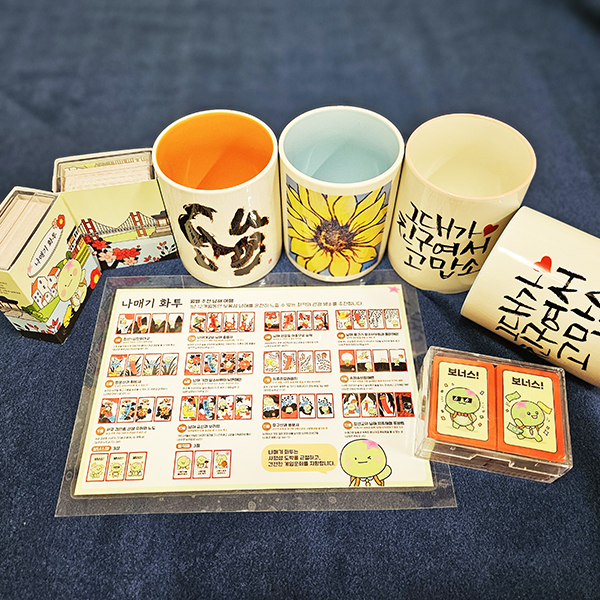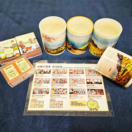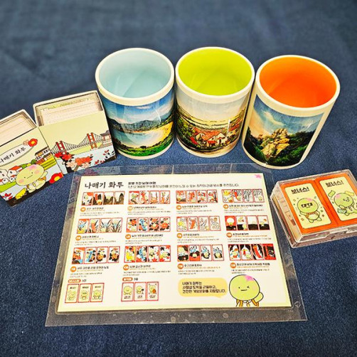 <나매기와 함께하는 감성남해 머그> 구성상품: 나매기 화투1+머그2 - 나매기 화투 -제품명: 캐릭터화투재질: 플라스틱사이즈: 36*56mm판매원: 남해군관광문화재단사용연령: 만 14세 이상나매기 화투는사행성 도박을 근절하고,건전한 게임문화를 지향합니다. 디자인: 감성남해(7점)/남해유자(4점)/행운의 해바라기/남해캘리규격 : 80mm x 95mm (가로 X 세로) 용량: 11oz 색상: 빨주노초파(5가지 색상)/속 or 띠재질(주원료) : 도자기특징 : 부드러운 수세미로 가볍게 세척 부드러운 그립감과 견고함 --------------------------------------------------------------------------------------- < 캔버스에 수채화를 직접 그린 듯 한 느낌의 고급 아트지를 사용한 감성남해 엽서 7점> <다랭이마을 봄> <다랭이마을 여름> <다랭이마을 가을> <다랭이마을 겨울> <상주은모래비치> <남해 독일마을> <남해 금산> https://osidanamhae.modoo.athttps://www.instagram.com/osidanamhaehttps://smartstore.naver.com/osidanamhae