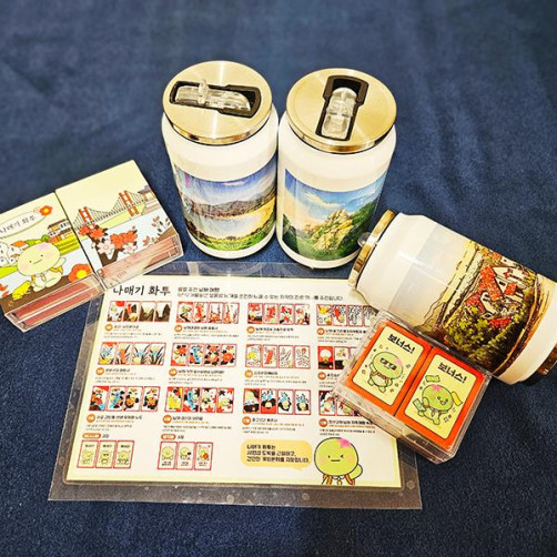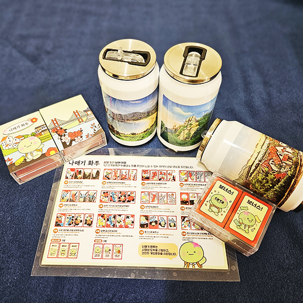 구성상품: 나매기 화투1+텀블러1 <나매기와 함께하는 감성남해 텀블러> - 나매기 화투 -제품명: 캐릭터화투재질: 플라스틱사이즈: 36*56mm판매원: 남해군관광문화재단사용연령: 만 14세 이상나매기 화투는사행성 도박을 근절하고,건전한 게임문화를 지향합니다. - 감성남해 텀블러 -용량: 350ml냉&온 기능이 탁월한 빨대형 텀블러맥주캔 사이즈로 아주 익숙한 텀블러윤슬처럼 반짝이는 멋스런 텀블러디자인: 감성남해(7점)/남해유자(4점)/행운의 해바라기/남해캘리/친구 --------------------------------------------------------------------------------------- < 캔버스에 수채화를 직접 그린 듯 한 느낌의 고급 아트지를 사용한 감성남해 엽서 7점> <다랭이마을 봄> <다랭이마을 여름> <다랭이마을 가을> <다랭이마을 겨울> <상주은모래비치> <남해 독일마을> <남해 금산> https://osidanamhae.modoo.athttps://www.instagram.com/osidanamhaehttps://smartstore.naver.com/osidanamhae