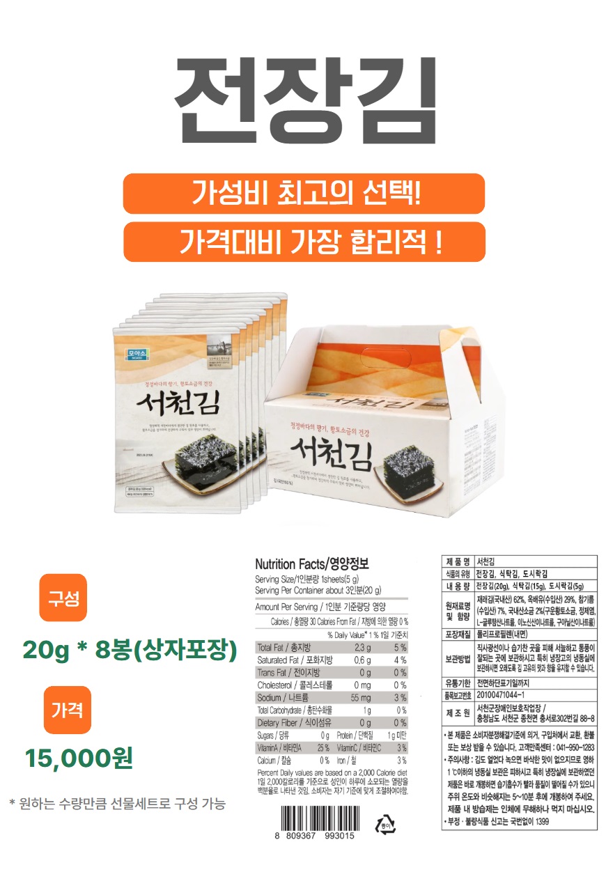 [이벤트] 서천김 전장조미김 (20g*8봉)+전장김2봉