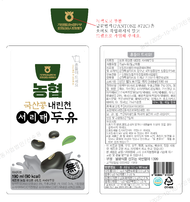 농협 국산콩 내린천 서리태두유 3.04L(190ml*16개입)