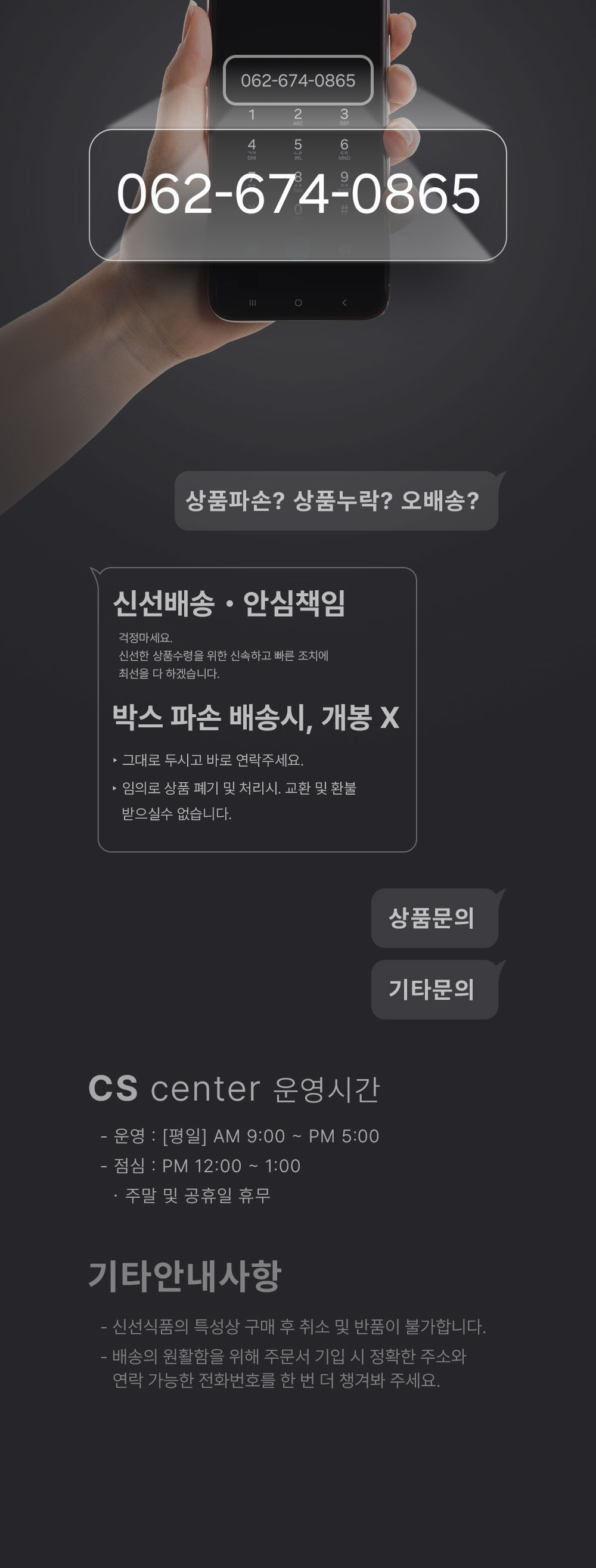 | 제조연월일, 소비기한 또는 품질유지기한 | 출고당일포장 |