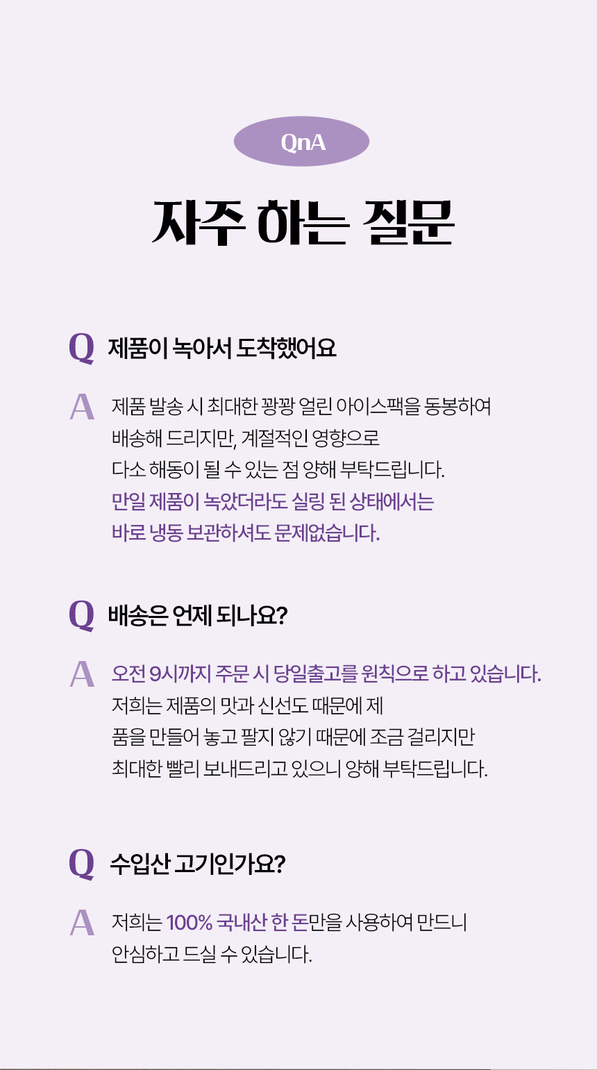| 제조연월일, 소비기한 또는 품질유지기한 | 주문시 상시 제조(소비기한 냉장-제조일로부터 7일, 냉동-제조일로부터 6개월) |