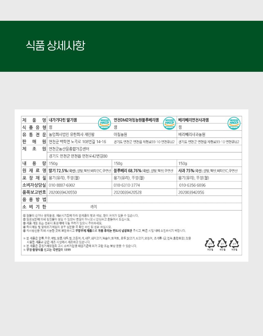 농부가 직접 재배하고 만든 잼세트 450g(딸기, 블루베리, 사과잼 각 150g)