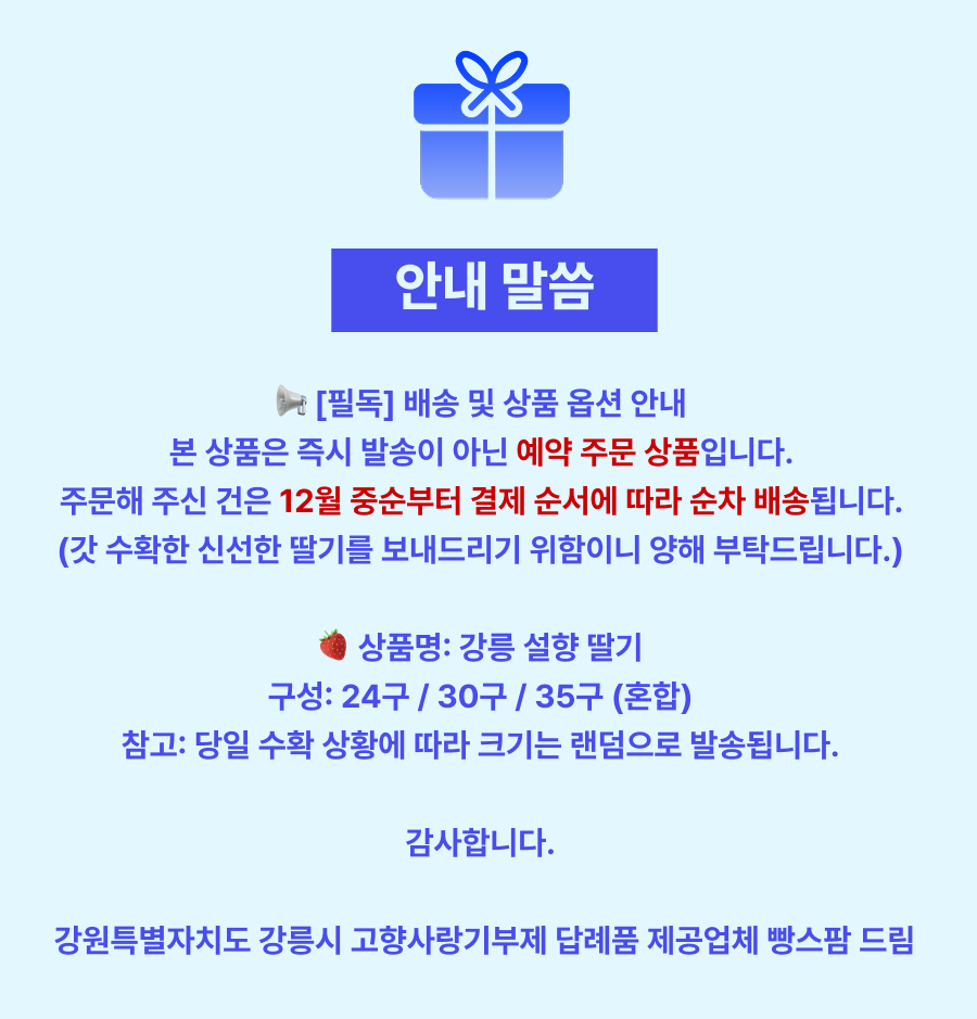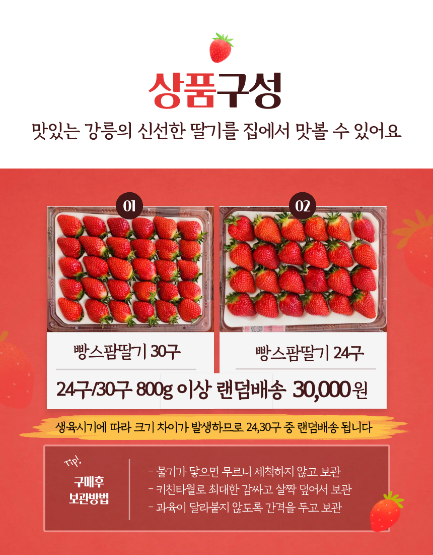 강릉빵스팜 설향 딸기(24, 30, 35구 중 랜덤발송)