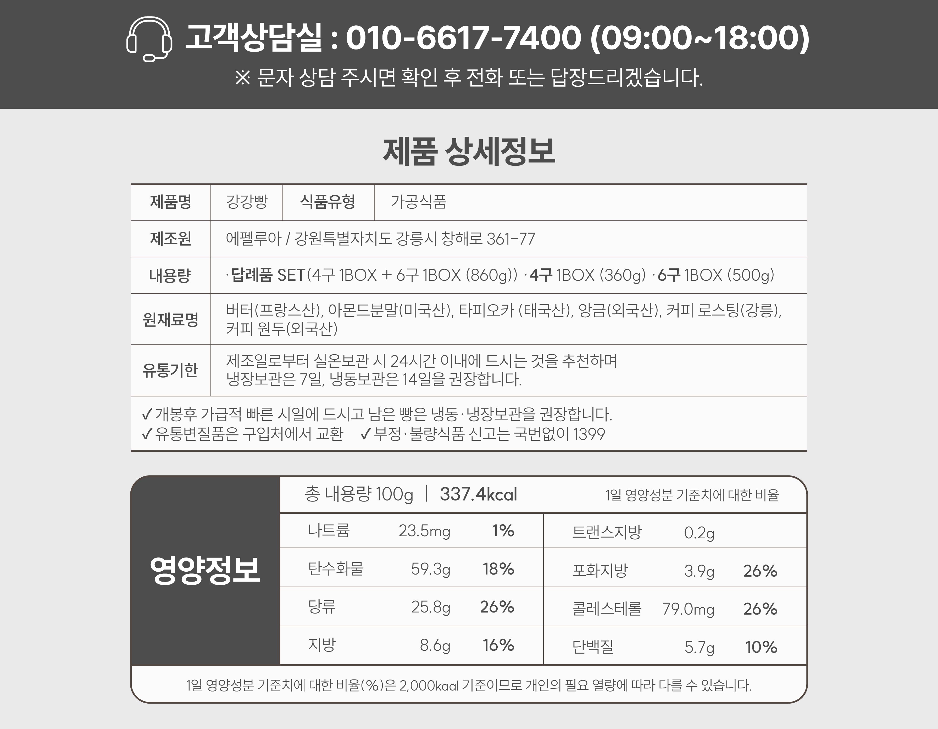 밀가루가 없는 강릉 커피빵, 강강빵 10개 800g(80g*4구+80g*6구)