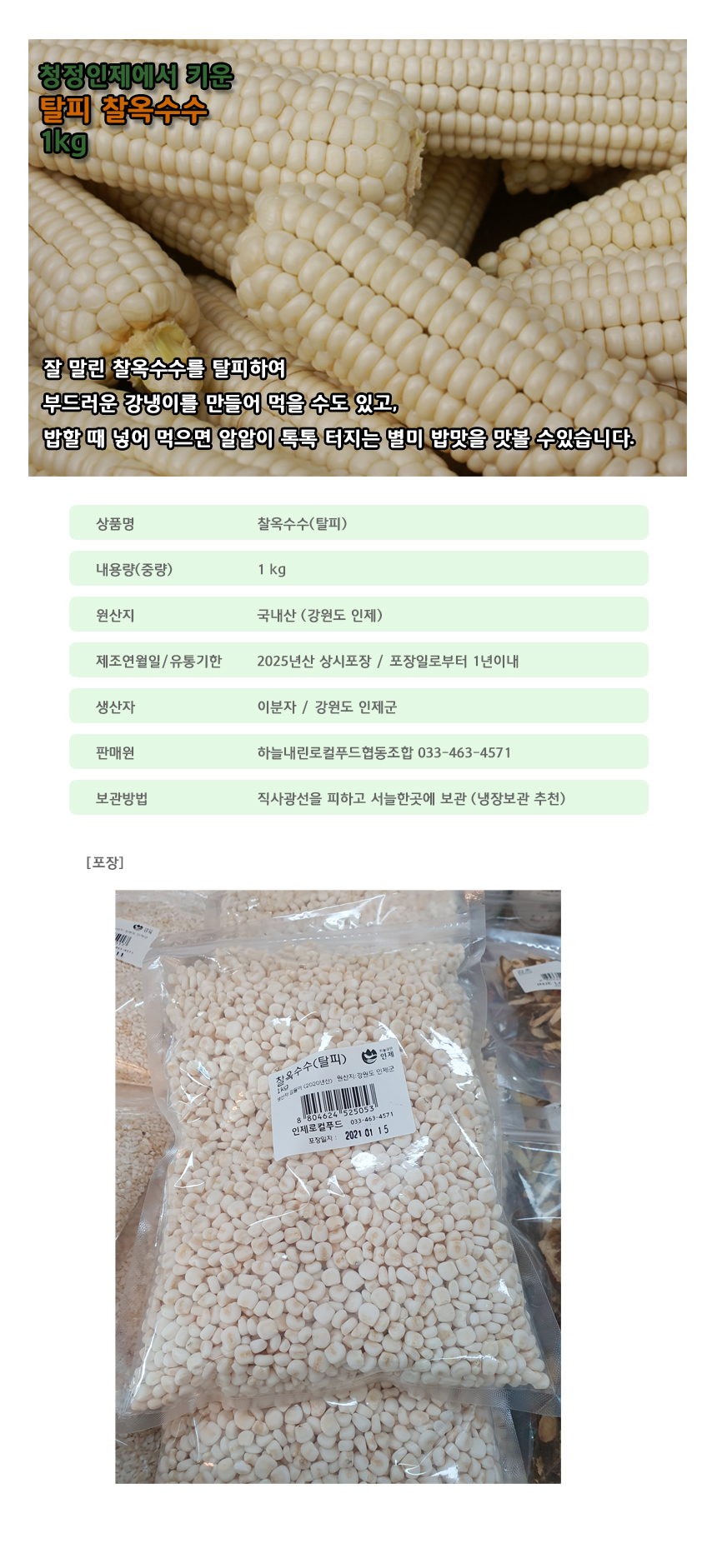 | 상품구성 | 찰옥수수(탈피) 100% |