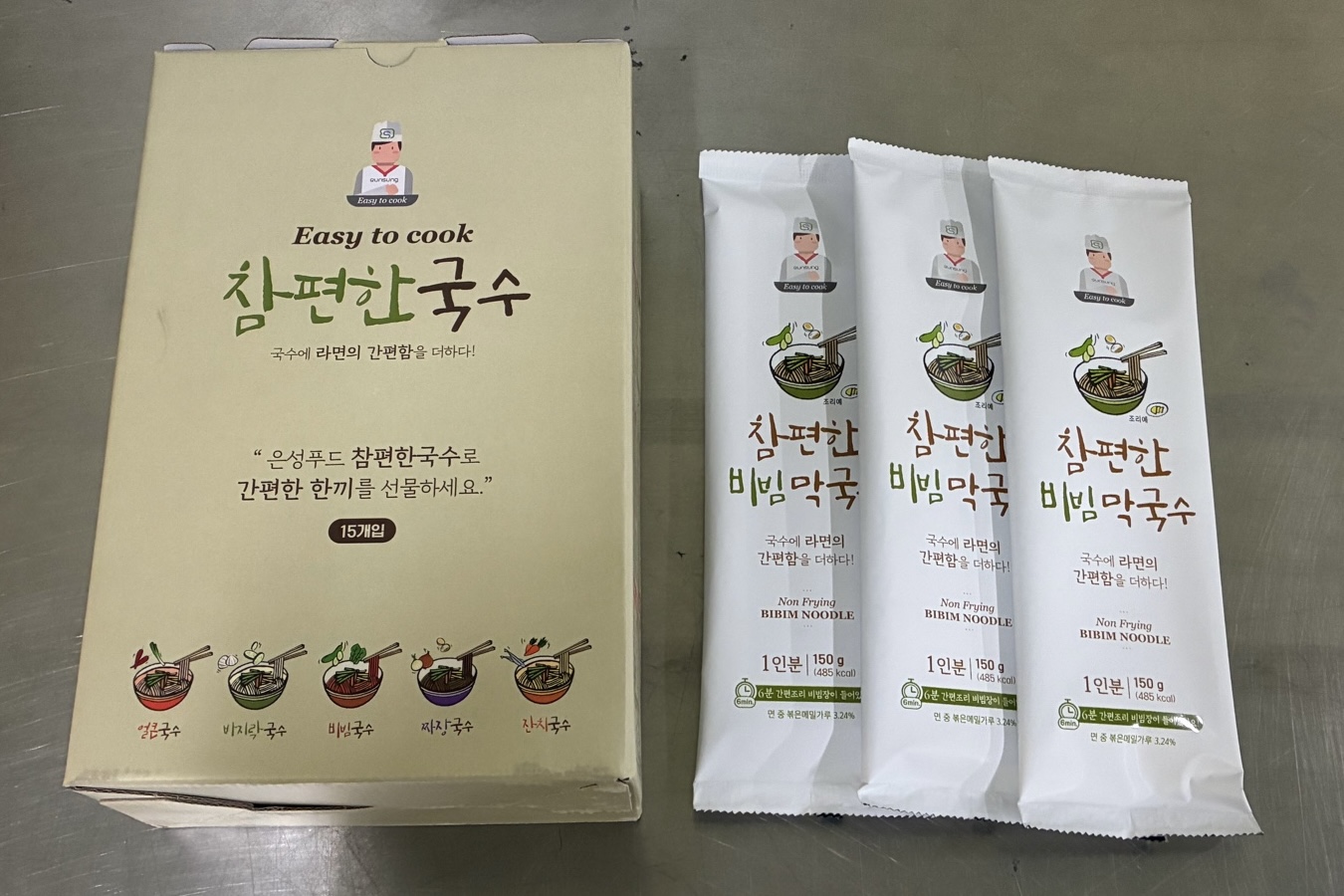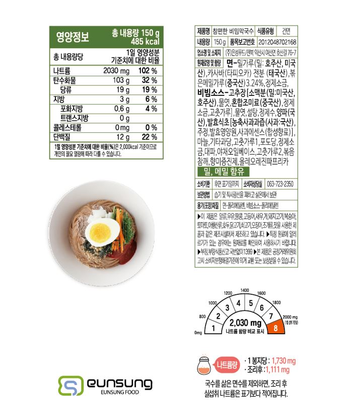 | 포장단위별 내용물의 용량(중량), 수량 | 바지락국수110g*3개/얼큰국수113g*3개/잔치국수112g*3개/비빔국수150g*3개/짜장국수125g*3개/비빔막국수150g*3개 |