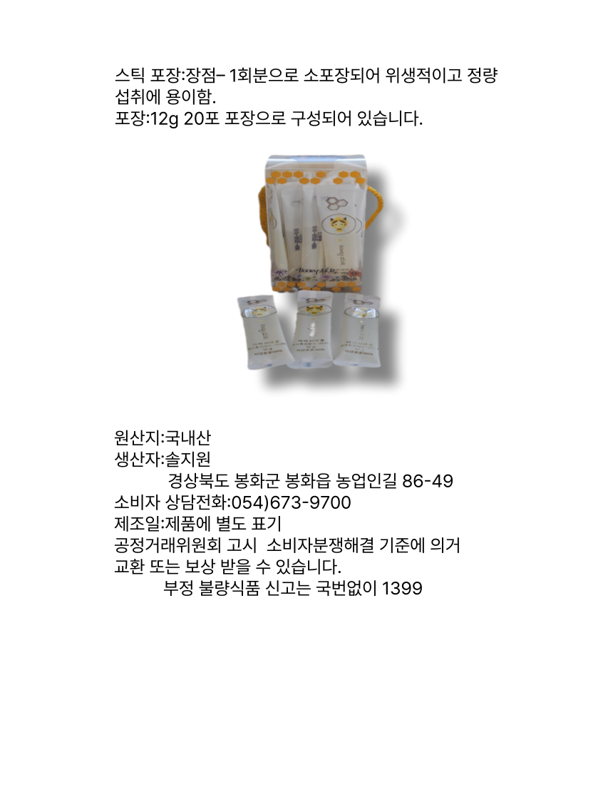 아카시아 스틱 더 탄탄 벌꿀 240g(12g*20포*2박스)