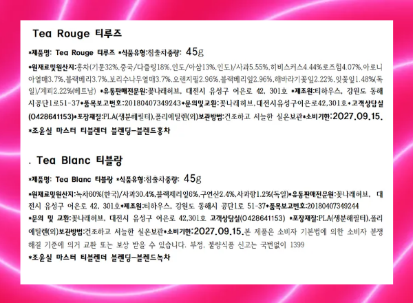티블랑 3g*15개입(45g) + 티루즈 3g+15개입(45g)