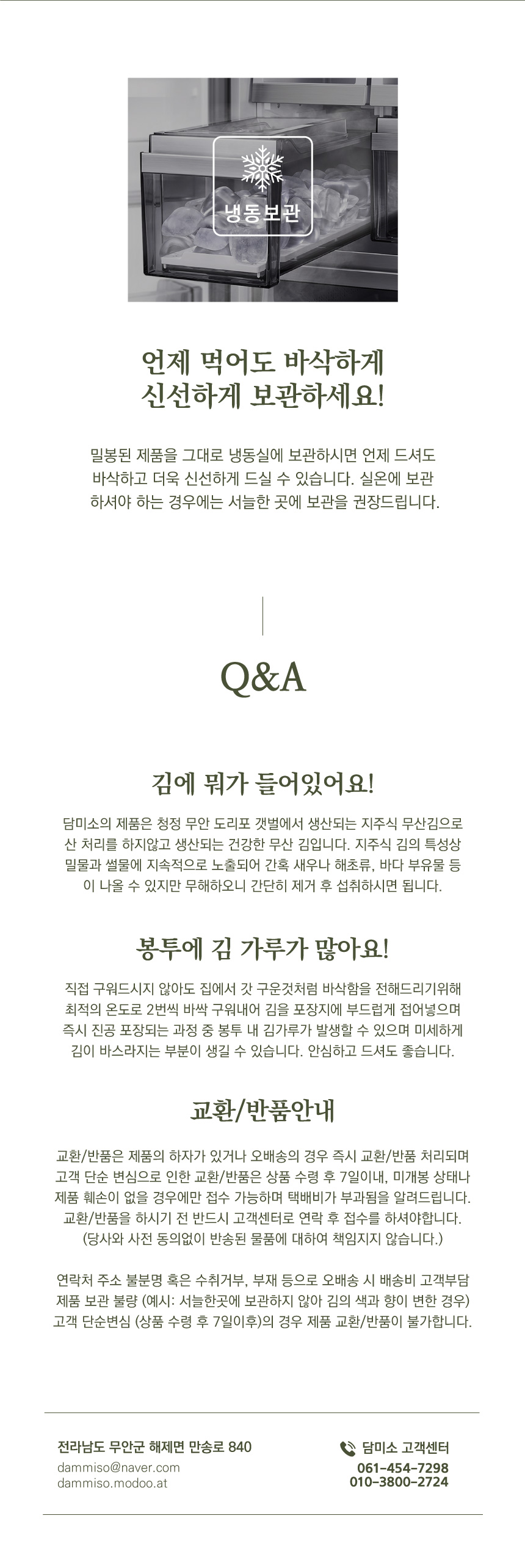 [이벤트] 담미소 도리포 지주식 곱창김 미니김+미니김 3봉