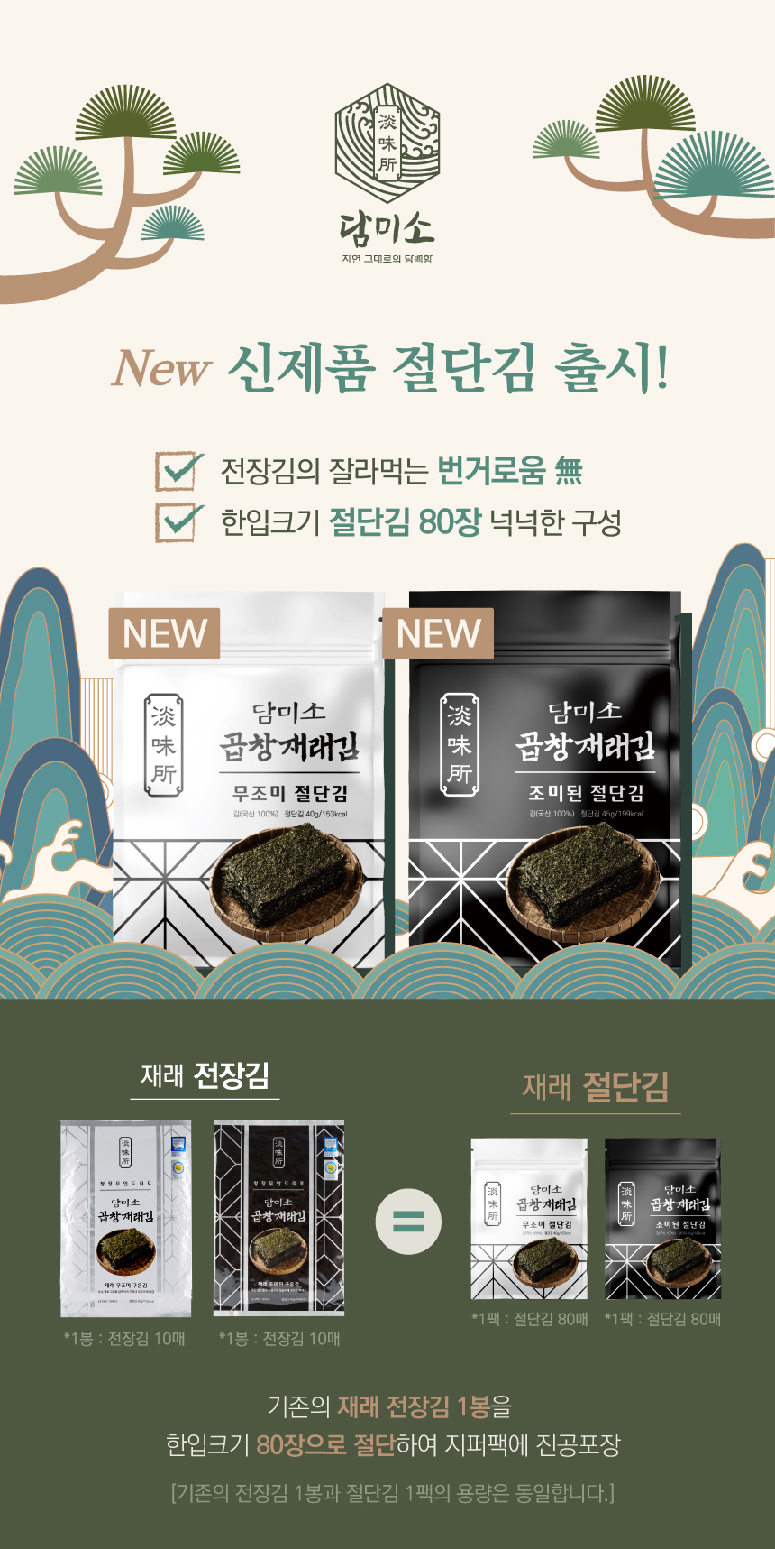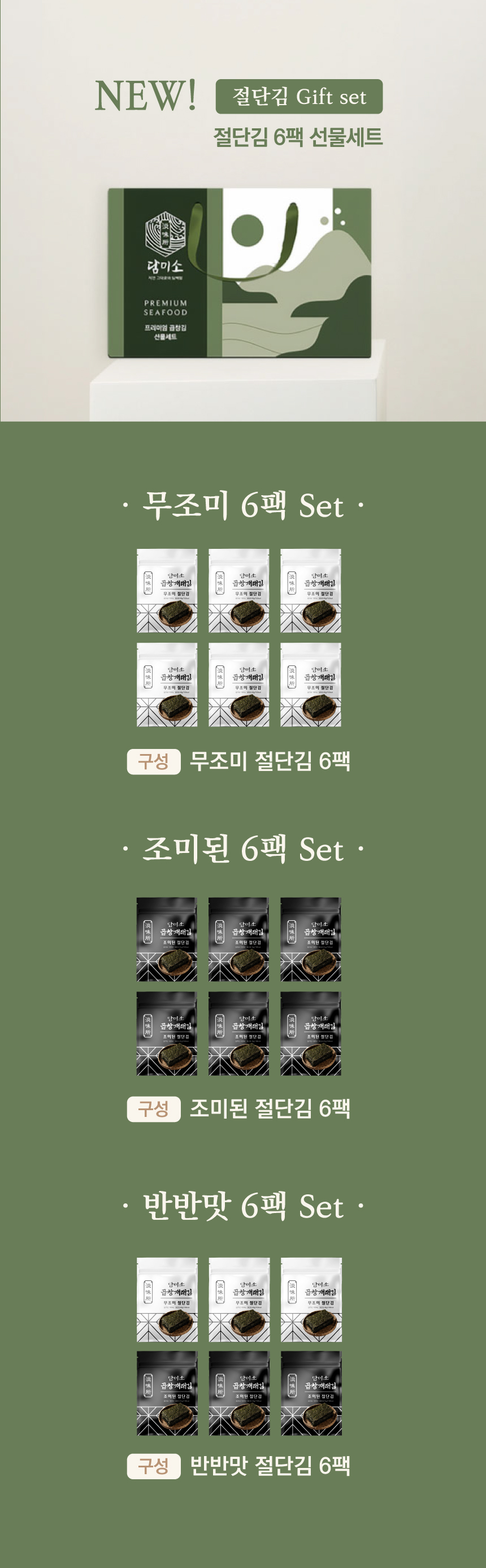 [이벤트] 담미소 재래 절단김 6팩 선물세트+미니김 3봉
