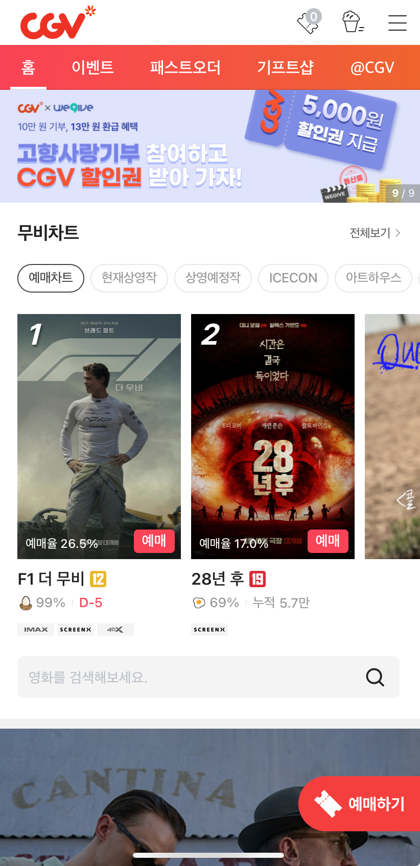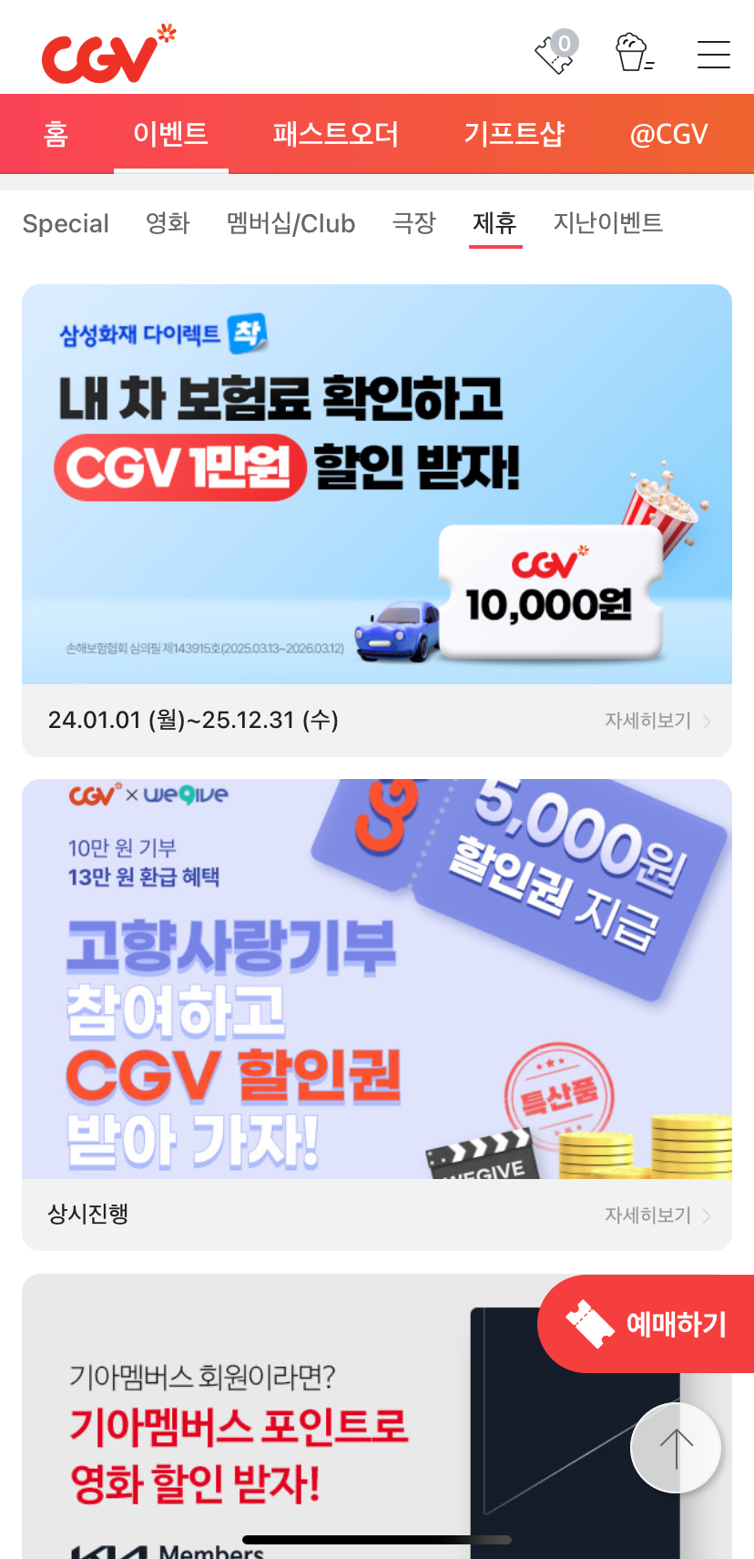위기브는 CGV와 제휴이벤트를 하고 있더라고요. CGV 통해서 고향사랑기부제에 참여하면, 영화권 5,000원 할인 쿠폰을 지급하고 있어요.