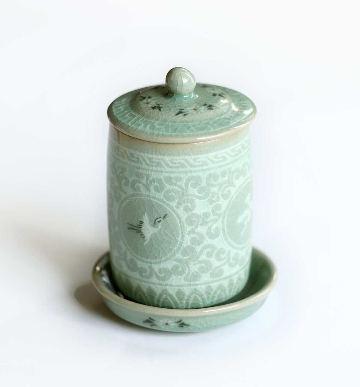 ▲ 청자 상감 국화 넝쿨무늬 통형잔 (©국립박물관문화재단 홈페이지)