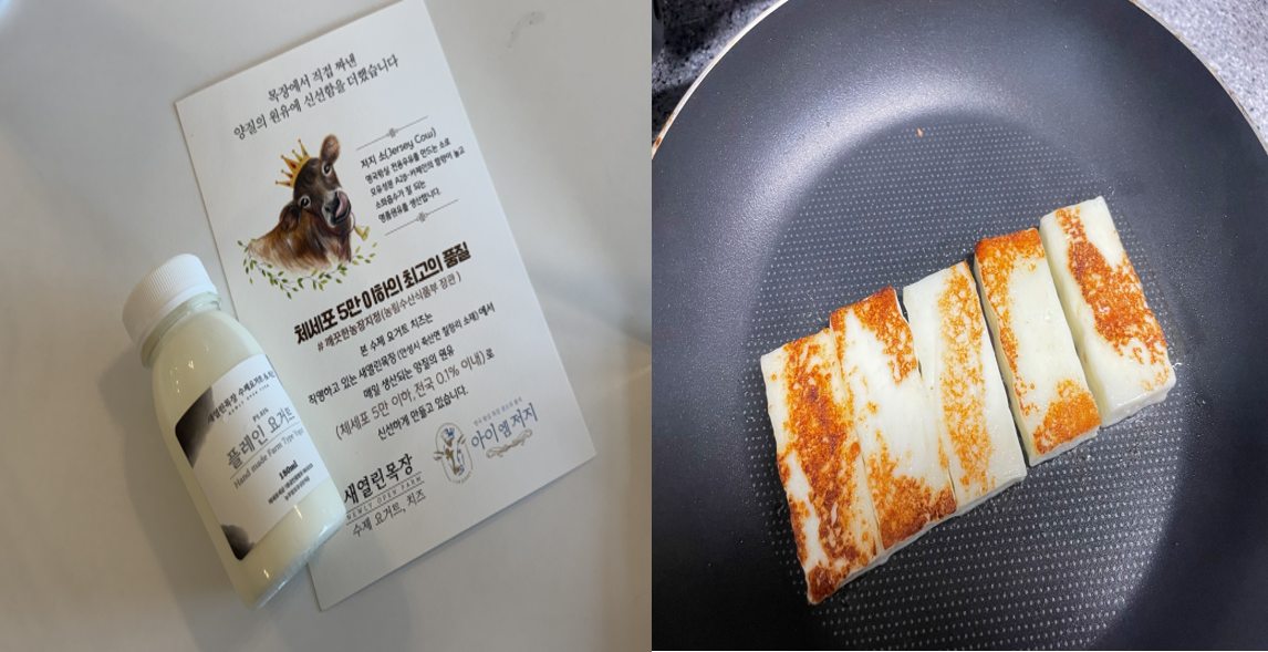 ▲ 저지소 원유로 직접 만드신 수제 요거트와 할루미 치즈를 맛보았습니다 ( ◜?◝ )