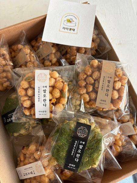 최근에는 딱딱한 식감을 개선해 부드럽고 쫀득하게 즐길 수 있는 수제 오란다가 큰 인기를 끌고 있습니다. 조청으로 굳힌 퍼핑 곡물에 흑임자, 인절미, 견과류 등 다양한 재료를 더해 남녀노소 누구나 좋아하는 간식으로 재탄생했죠.