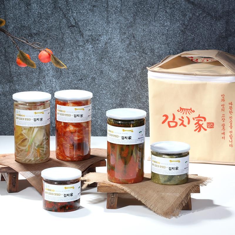 구성은 총각김치, 깍두기, 갓김치, 파김치, 배추김치 로 되어 있어요.
