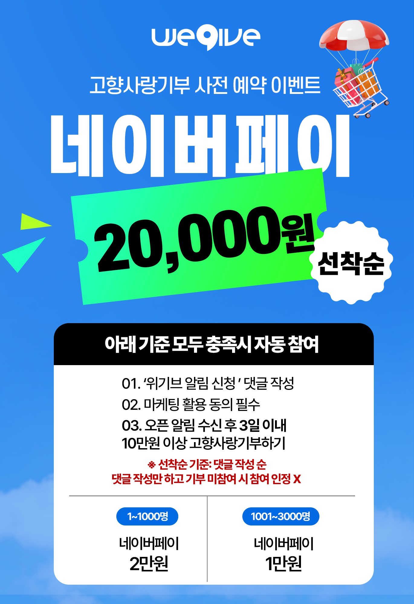 위기브 고향사랑기부 사전 예약 이벤트 | 네이버페이 최대 2만 포인트 혜택
