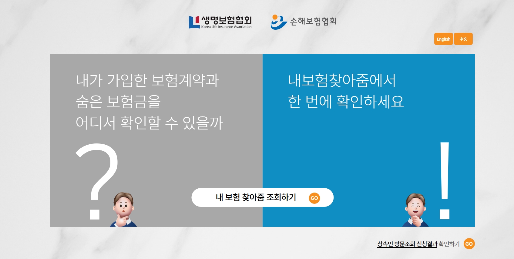 정부가 운영하는 '내 보험 찾아줌(cont.insure.or.kr)' 사이트에 접속하면, 단 1분 만에 내가 가입한 모든 보험 계약과 찾아가지 않은 숨은 보험금을 한 번에 조회하고, 바로 청구까지 할 수 있습니다.
