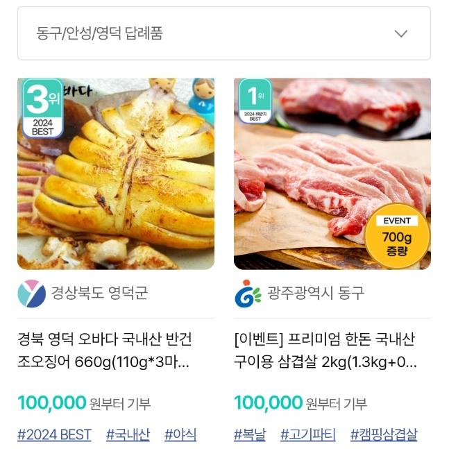 며칠 후면 2026년임. 얼른 기부하고 답례품도 받으시길!