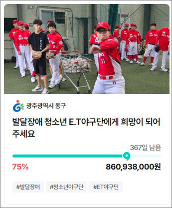 내가 선택한 것은 광주광역시 동구의 지정 사업 '발달장애 청소년 E.T야구단에게 희망이 되어주세요'