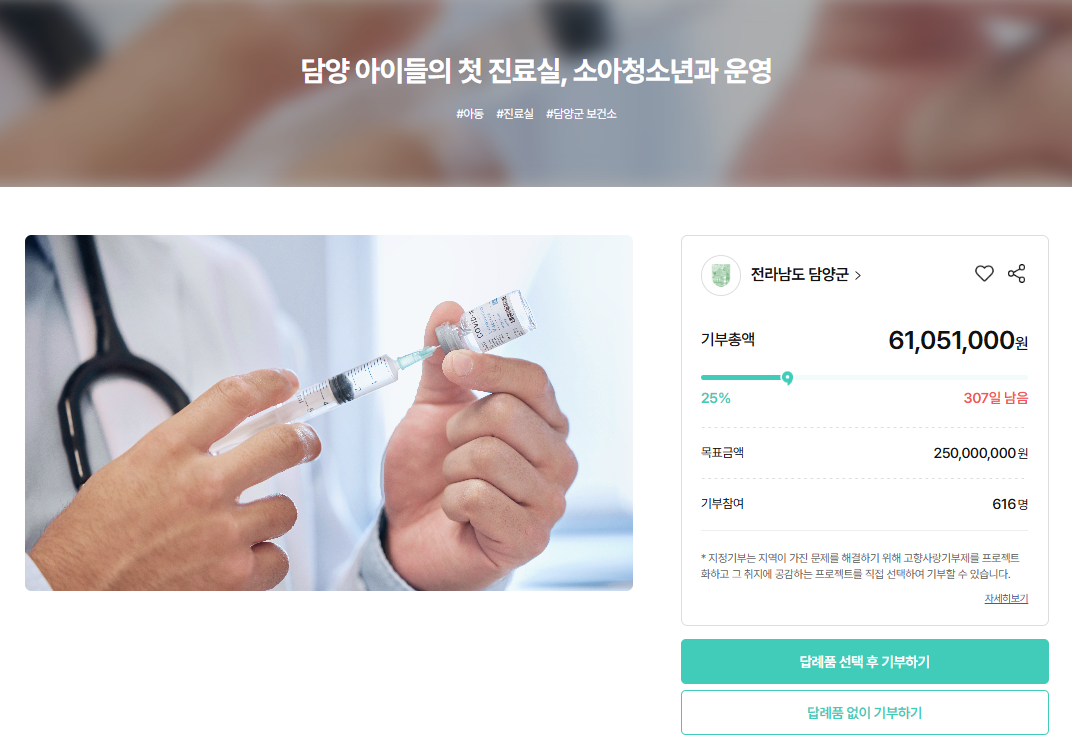 담양의 아이들이 가까운 병원을 가질 수 있도록, 영광의 아이들이 안전한 공간에서 웃을 수 있도록.