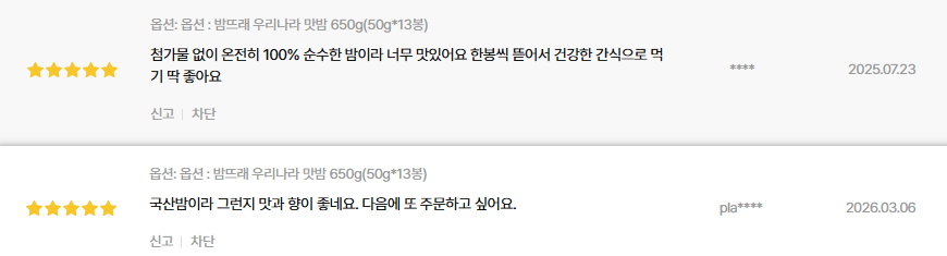 2️⃣ 100% 국산밤 + 무첨가로 신뢰감 높은 간식
