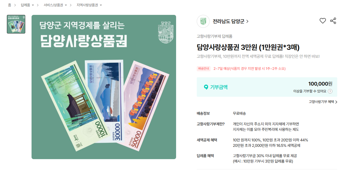담양군에 기부할 경우 답례품으로 담양사랑상품권을 선택하는 방법도 있습니다.